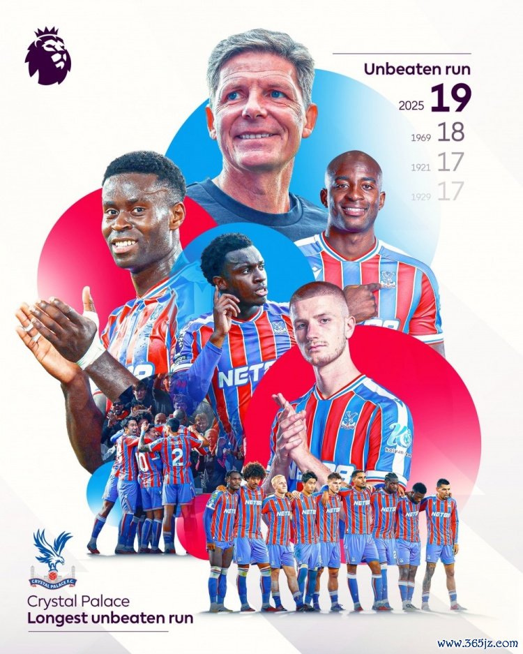 据英超官方统计,水晶宫各赛事19场不败,创造队史最长不败记载。