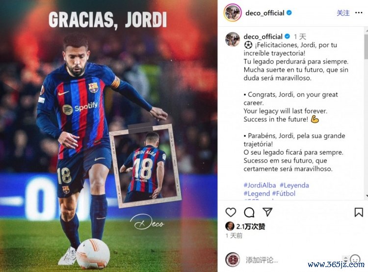 德科社媒晒出感谢阿尔巴的海报,配文:“恭喜,约迪,你渡过了精彩的作事生计。你的‘足球遗产’将永存,祝改日得回见效!”