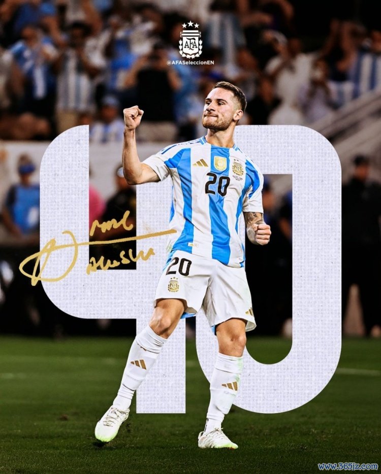 此役是麦卡利斯特为阿根廷队出战的第40场比赛,阿根廷队官方社媒晒出海报,对他暗意道贺。
