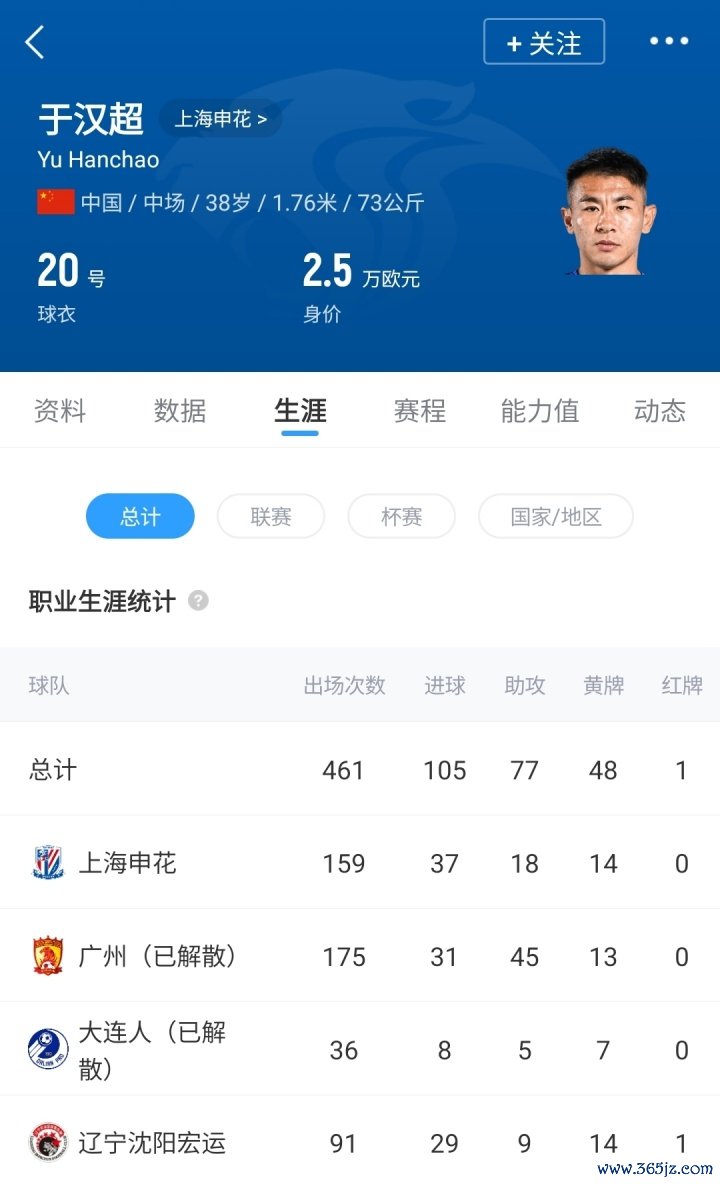 本赛季38岁的于汉超代表申花出战26场比赛,孝顺9球3助。