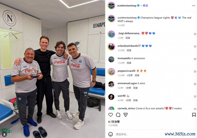 麦克托米奈也毫无悬念在赛后被欧冠官方评为全场最好球员。不外他在赛后通过社媒晒出了那不勒斯责任主说念主员手捧欧冠MVP奖杯的合影,并配文:“欧冠之夜🤩⚽️🩵你们才一直是果然的MVP!”