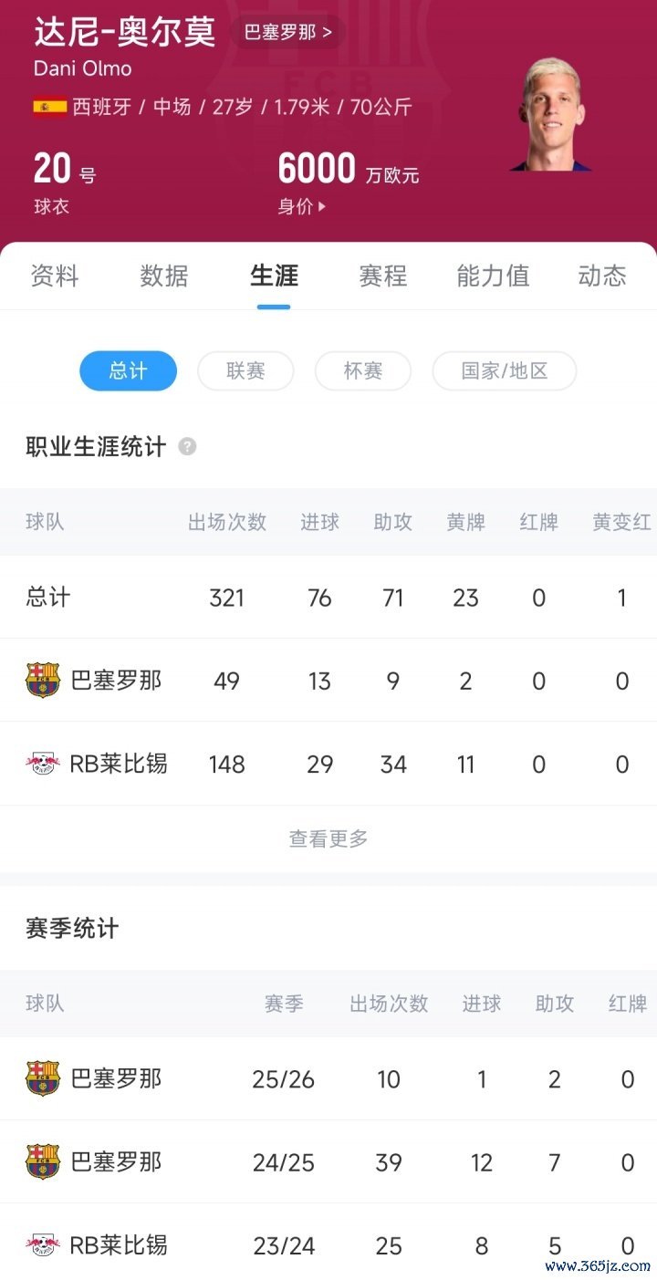 2024年夏窗奥尔莫以5500万欧元的转会费,从RB莱比锡加盟巴萨,首个赛季出战39场比赛孝顺12粒进球和7次助攻,是巴萨西甲夺冠的元勋之一。
