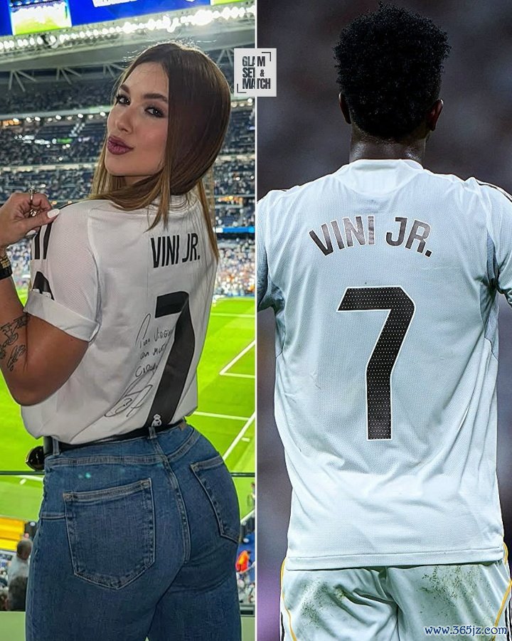 她秀出了我方穿皇马球衣的相片,并晒出维尼修斯的7号以及球衣上的亲笔签名。