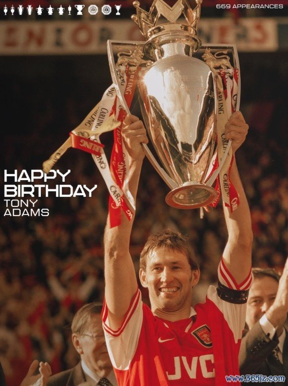 阿森纳官方制作海报为亚当斯庆祝59岁诞辰,同期配文:他是英格兰足球历史上独逐一位在三个不同庚代(上世纪80年代、90年代以及本世纪00年代)举起三次联赛冠军的队长。祝你诞辰忻悦,阿森纳先生。