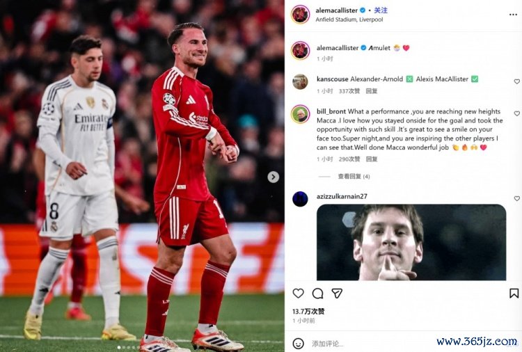 女友也通过社媒用双关恢复了麦卡的示爱:“AAA,始终”(麦卡利斯特的名字亚历克西斯Alexis、女友名Ailén、两东谈主的孩子Alaia的首字母齐为A)。