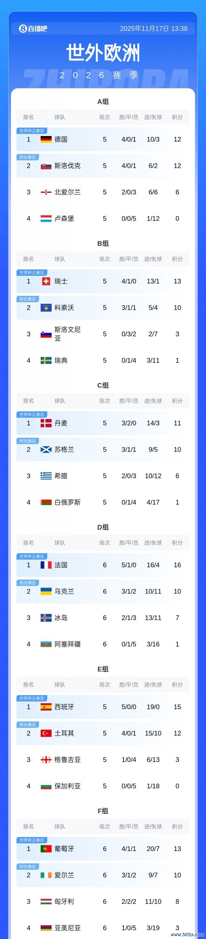 世初赛欧洲区预选赛小组赛行将闭幕,当今16个纵贯限额中,英格兰、法国、克罗地亚、葡萄牙、挪威仍是出线,还有哪些球队有晋级契机?哪些球队参加附加赛?哪些球队仍是出局?让咱们一议论竟。