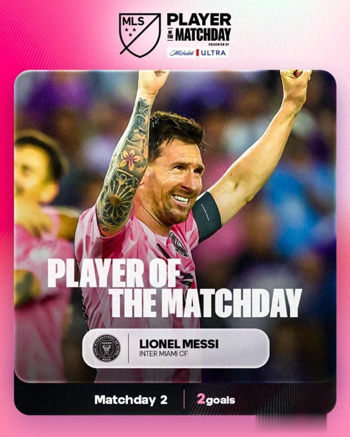 3月3日。美国大联盟第二轮全部结束,官方也评选本轮最佳运动员名单以及本轮最佳选手。在迈阿密国际4比2逆转奥兰多城的赛事中踢进两个精彩点球区内外长距离射门并获得最有价值运动员的梅西,毫无悬念入选本轮最佳运动员名单,而且是本轮最佳选手。
