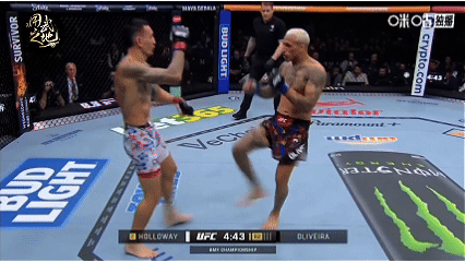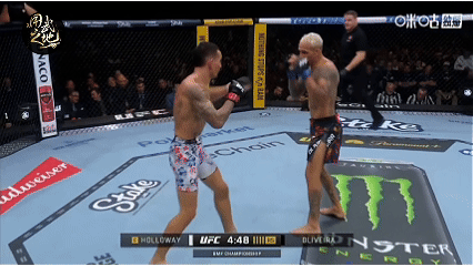 在第五回合的对拼中,奥利维拉虽然也反被压制,但霍洛威并没有打出有效的进攻。
