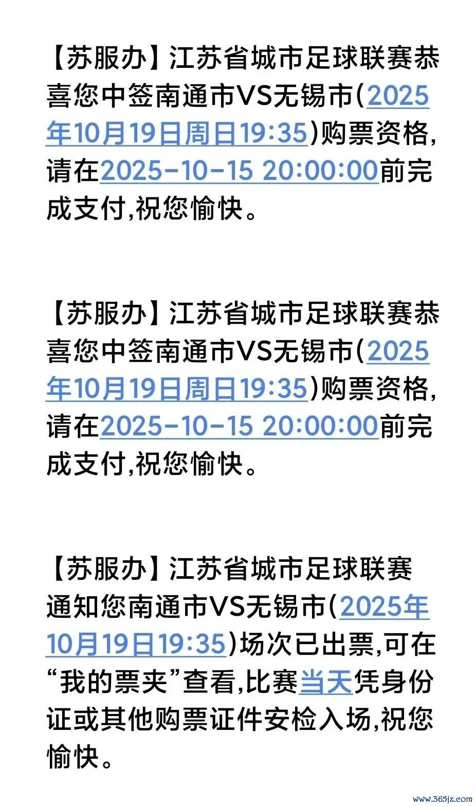 市民和球迷可于10月14日20时后在苏服办“省足球联赛预约购票”平台“我的预约”模块中查察抽签恶果,中签的市民和球迷还将收到短信提醒。